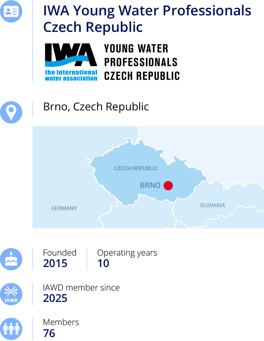 As young professionals, we are driven by the belief that the water sector needs our energy, creativity, and new perspectives. Our mission in IWA YWP CZ is to create opportunities where we can grow both professionally and personally, while learning from experienced experts and sharing knowledge among our peers. We empower young water professionals to bring fresh energy and innovative ideas into the field.